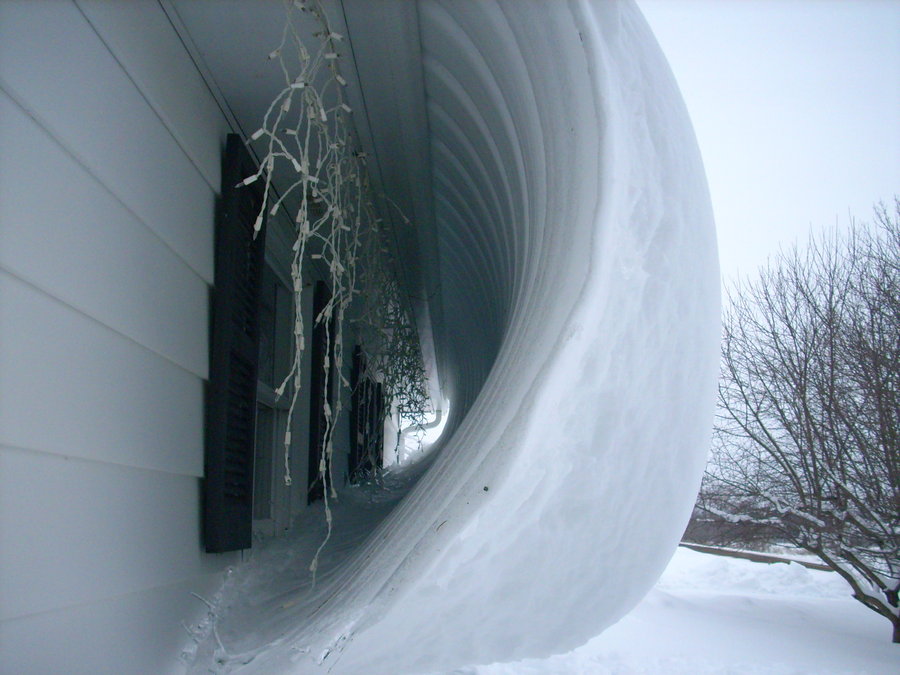 But for roofers and folks like us in the snow guard industry, the words “sliding snow” mean something quite different altogether… rather than cars sliding on roads, the term to us conveys snow gradually sliding over time on roof surfaces to form some pretty cool-looking, but dangerous and damaging sculptures like in the images below. When large build-ups occur without being managed by controlled snow guard or melting systems, massive avalanches can end up crashing down to destroy not just roof structures, but people, plants, vehicles, and other valuable property. If you are seeing any thing like the picture below, or the beginning of such with snow and ice forming over the edge of the eave, then installing snow guards could end up saving your life!